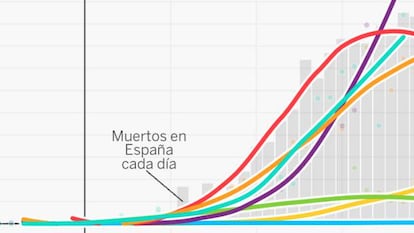 España sufre uno de los peores brotes de coronavirus. En la fase exponencial los muertos se doblaban cada pocos días: pasaron de 10 a 200 en una semana y de 200 a 1.400 la siguiente. Ese crecimiento se ha contenido y la clave ahora es la tendencia: ¿seguirá frenándose?