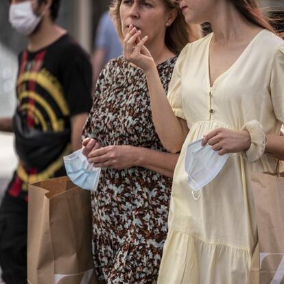 La mascarilla dejó de ser obligatoria en los exteriores justo 401 días después de que entrara en vigor la primera norma que imponía su uso en la calle. Aquella directriz arrancó diciendo que se debía usar solo si no se podía mantener la distancia de 1.5 metros (como ahora), pero se fue endureciendo en los siguientes meses. Tras los vaivenes de las primeras semanas de pandemia, en las que se desaconsejó su uso, el cubrebocas se ha convertido en el salvavidas ante un enemigo invisible y su aceptación ha sido casi unánime: por el temor al virus, por cumplir la norma o por el miedo a ser amonestado si no se seguía la directriz. Según la última encuesta del Centro de Investigaciones Sociológicas (CIS), el 99,4% de los españoles la usa habitualmente. “Se va a hacer raro no llevarla por la calle porque estamos muy acostumbrados”, dice Ona López, de 21 años.