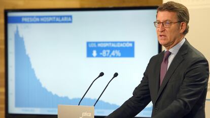 La Xunta de Galicia exigirá desde el próximo sábado un certificado de vacunación o prueba negativa para acceder al interior de bares y cafeterías en 36 municipios, incluidos Vigo, Ourense, Pontevedra, O Grove y Sanxenxo. Este requisito, similar al que ya se ha puesto en marcha en Francia o Grecia, ya era obligatorio desde el pasado martes en todos los locales de ocio nocturno de la comunidad. Otras comunidades también piden estar inmunizado o prueba negativa de covid para acceder a discotecas, pero Galicia es la primera que da el paso con bares y restaurantes. La medida ha sido presentada este miércoles por el presidente autonómico, Alberto Núñez Feijóo, quien además anunció el cierre del ocio nocturno en los municipios con más restricciones, en los que habita un 35% de la población gallega (casi un millón de personas). La incidencia acumulada en la comunidad asciende a 502 diagnósticos por cada 100.000 habitantes en las últimas dos semanas. Es un índice altísimo, a pesar de estar por debajo de la media nacional (644,5).
