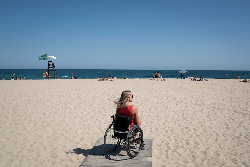 Las barreras arquitectónicas son las más visibles. Como el coche mal aparcado que se encontró Balmes a las puertas de su club de natación o las dificultades para acceder a la playa de al lado. Hay una rampa, sí, pero la pasarela solo llega hasta la mitad del arenal, a varios metros del agua: “Y aquí me quedo, no puedo acceder”, lamenta la joven observando la orilla al fondo. Tampoco el terreno arenoso del aparcamiento está pensado para personas con discapacidad. “En caso de que llueva, esto es barro”, dice Balmes señalando al suelo. “Y yo estoy tocando la silla con las manos todo el tiempo y luego tengo que cargarla en el coche. Son pequeños detalles que no se tienen en cuenta. No eres consciente hasta que te encuentras en esta situación”, agrega la nadadora.