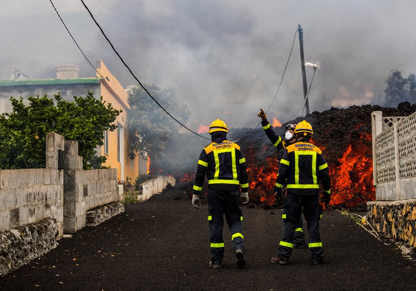 El volcán de La Palma, el primero que entra en erupción en tierra firme en España desde el de Teneguía (también en La Palma) en 1971, mantiene en vilo a la isla canaria un día después de que empezara a arrojar fuego y ceniza. El frente de lava que expulsa, de una altura media de seis metros, como un edificio de dos plantas, ya arrasa a su paso casas, cultivos e infraestructuras en localidades como Tacande o El Paraíso (pedanía de El Paso). Avanza en la tarde de este lunes a unos 300 metros por hora, más despacio que los 700 metros por hora que se calcularon inicialmente junto a los conos eruptivos, según Vicente Soler, vulcanólogo del CSIC. Sobre las diez de la noche, ha comenzado la evacuación de la zona de Tacande, tras aparecer una nueva boca eruptiva, según ha informado la Guardia Civil.