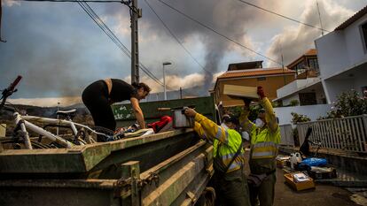 Las familias del barrio de Todoque, en La Palma, rescatan entre nervios y lágrimas los objetos y documentos antes de que la lava engulla sus hogares