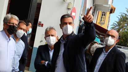 Cuarta visita del presidente del Gobierno a La Palma desde que el volcán entró en erupción el pasado 19 de septiembre. Pedro Sánchez destacó el miércoles en rueda de prensa que tanto el Ejecutivo que preside como el canario, el Cabildo de La Palma y los ayuntamientos afectados “están trabajando contra reloj” para que “los palmeros y palmeras tengan la mayor de las certidumbres”. “Más allá de las discrepancias ideológicas”, explicó en la Casa Salazar de Santa Cruz de La Palma, que hay “un objetivo común, que pasa por salvaguardar las vidas, [...], realojar a las personas y abordar la tarea de reconstrucción”. Y sentenció: “Tenemos por delante muchísimo trabajo. La actividad del volcán no cesa y no parece que a lo largo de los próximos días podamos ver una reducción”. En el mismo sentido se ha pronunciado el presidente del Gobierno canario, Ángel Víctor Torres: “Estamos a merced de este volcán, él dirá cuándo acaba”.