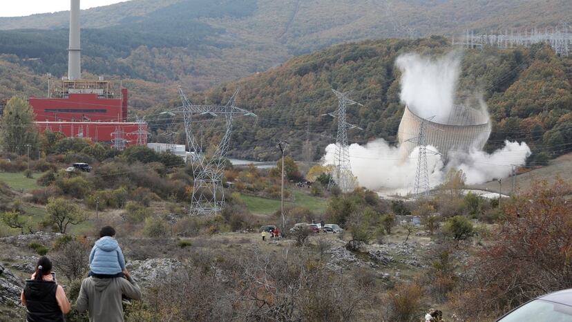 La gran torre de refrigeración de la central térmica de Velilla del Río Carrión, en Palencia, cayó en la tarde de este jueves. Su demolición forma parte del proceso de desmantelamiento de esta central 56 años después de su puesta en marcha y 15 meses después de su clausura. España está viviendo un proceso de abandono del uso del carbón para generar electricidad. Este combustible fósil es el que más contribuye a las emisiones de efecto invernadero y está en el punto de mira de la lucha contra el cambio climático.