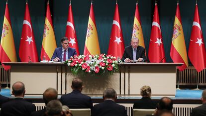 El presidente del Gobierno, Pedro Sánchez, ha anunciado este miércoles en Ankara que el personal sanitario y las personas de 60 a 69 años de edad recibirán una tercera dosis de la vacuna frente al coronavirus. El anuncio, realizado junto al presidente turco Recep Tayyip Erdoğan, llega después de que la Ponencia de Vacunas —el grupo de expertos que marca las líneas maestras de la estrategia de vacunación— haya acordado dar el paso ante la creciente evidencia de que con el transcurso de los meses descienden los niveles de anticuerpos en las personas inmunizadas, lo que las hace más proclives a contraer la infección aunque sea de forma leve. “Ahora la propuesta se va a llevar a la Comisión de Salud Pública y lo vamos a trabajar con las comunidades autónomas para seguir avanzando en la protección de estos colectivos”, ha explicado Sánchez.