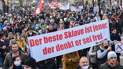 Las pancartas mostraban que la decisión anunciada el viernes por el canciller democristiano, Alexander Schallenberg, que gobierna en coalición con Los Verdes, ha movido también la protesta. “Obligación de pensar en vez de obligación de vacunar”; “por la libertad, sobre mi cuerpo decido yo”, decían algunas pancartas.