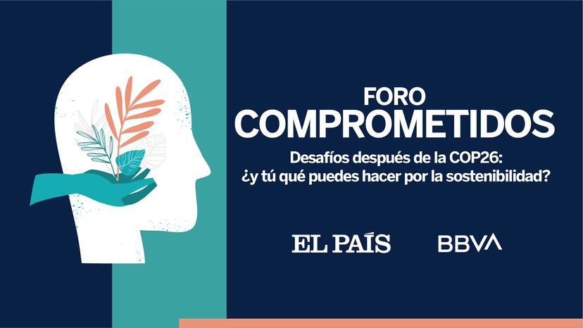 En el Foro Comprometidos. Desafíos después de la COP26: ¿Y tú qué puedes hacer por la sostenibilidad? también participaron Germán Granda, director general de Forética; Antonio Espinosa de los Monteros, consejero delegado de Auara; Guillermo Martínez Gauna-Vivas, director de Ayúdame 3D; Gonzalo Mestre, fundador de Sheedo Paper; Magda Cebrián, cofundadora de Go Zero Waste; Catalina Trujillo, cofundadora de Souji, y Lidia del Pozo, directora de Programas de Inversión en la Comunidad de BBVA.