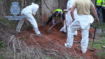 El hombre, según los investigadores, no se hospedó en ningún lugar hasta que encontró un sitio que le pareció propicio para deshacerse del cuerpo de su mujer. El día 27 compró “una pala, un palote, un hacha, unos guantes anticortes y un cúter” en una tienda de efectos industriales de la localidad valenciana y, supuestamente, esa misma noche enterró el cuerpo de su esposa en una finca pegada al camino de Torrexó, en una zona boscosa que se encuentra detrás del hospital de La Ribera. Los agentes buscaron allí sin descanso hasta hallar los restos de la mujer el pasado 21 de enero, tras semanas de minuciosa investigación.
