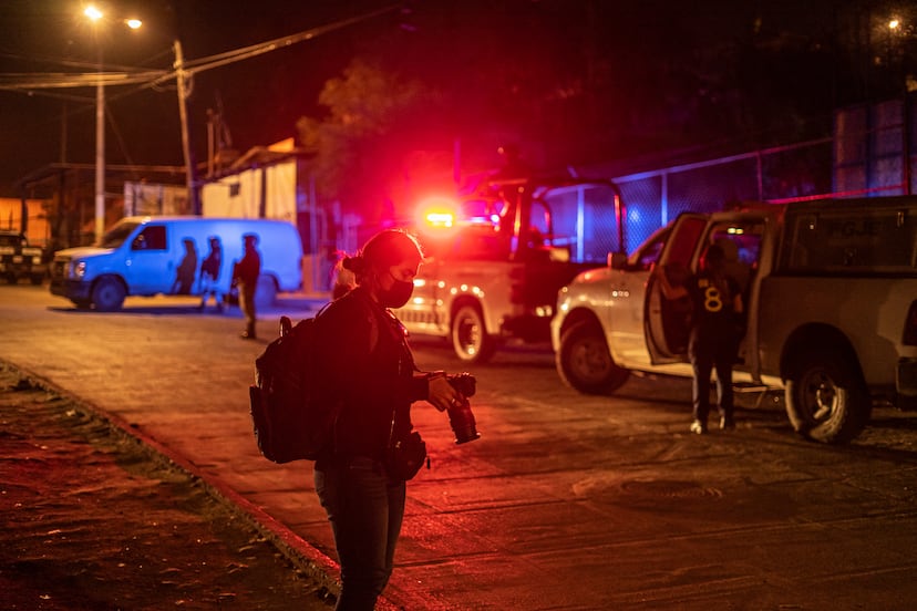 Escala las calles de los barrios bravos de una de las ciudades más violentas del país con su cochecito rojo. A cualquier hora y sobre todo de noche, pues la violencia asoma con más voracidad cuando el sol se esconde. Pegada a su celular, recibe avisos de asesinatos, lesionados con arma de fuego y la tarde en la que EL PAÍS la acompañó, el caso de un menor acribillado de un balazo en la cabeza en una cancha de fútbol. Esa tarde y ya de noche, alrededor de las 18.30 horas, Melo subía con su carro a uno de los barrios que pueblan sin ningún orden los cerros. Donde más matan y donde no sube nadie que no sea de allá. Solo ellos: los fotógrafos de nota roja, que desde hace décadas la violencia de los cárteles no les ha dado tregua. Y Melo es la única mujer de cinco compañeros.
