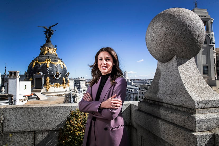 Llega del Congreso casi corriendo, se escuchan los pasos de Irene Montero entrando al Ministerio de Igualdad. Se acaba de anunciar la entrega de material militar ofensivo a la resistencia ucrania y la ministra apunta, antes de comenzar esta entrevista, a vías diplomáticas para la paz y a que perspectiva de género en la guerra significa entender las consecuencias que en un conflicto bélico sufren las mujeres, las niñas y los niños. Son la mayoría de los 1,2 millones de personas que ya han tenido que salir de Ucrania. Después, habla de cómo se llega este año al 8-M, con cuatro leyes pendientes en diferentes puntos de tramitación, con un movimiento feminista dividido y con las carencias que ha dejado ver la pandemia en cuanto a los cuidados y la corresponsabilidad.