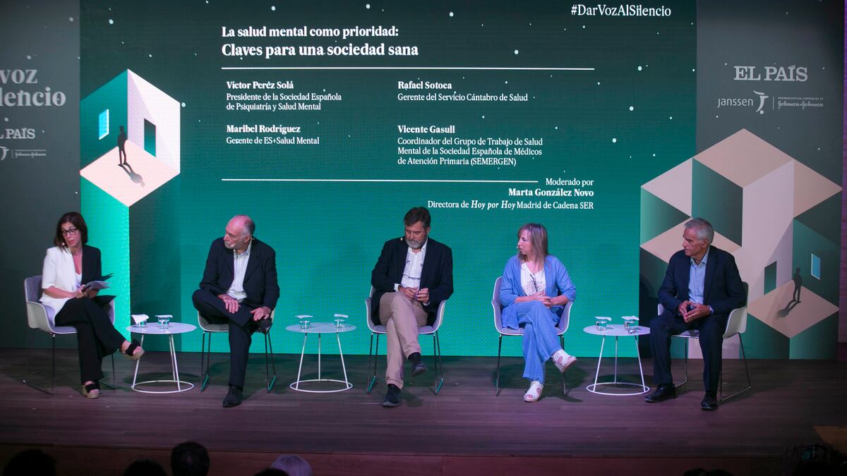 El último caso de ideación suicida que ha visto Vicente Gasull, coordinador del Grupo de Trabajo de Salud Mental de la Sociedad Española de Médicos de Atención Primaria (SEMERGEN), pudo ser detectado, y evitado, gracias a la voz de alarma de una compañera de trabajo, que se percató de que su colega subía a la azotea y se asomaba a la barandilla en la hora del almuerzo. Tejer redes afectivas, “que nos sirvan de colchón cuando perdemos el pie”, como dice Rafael Sotoca, gerente del Servicio Cántabro de Salud, es una de las necesidades detectadas en el evento Dar voz al silencio, organizado por EL PAÍS y la farmacéutica Janssen, para hablar en voz alta de salud mental, depresión y suicidio. Pero hay muchas más: poner el foco, y el esfuerzo, en la prevención; ser capaces de llegar a mujeres y a jóvenes, dos colectivos vulnerables y desatendidos. Y normalizar. “Un 25% de la población sufre o sufrirá algún tipo de trastorno mental. Nos puede pasar a cualquiera”, subraya Víctor Perez Solá, presidente de la Sociedad Española de Psiquiatría y Salud Mental.