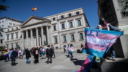 La ley trans y la reforma del aborto son dos de las normas estrella dentro del paquete social que tiene aún pendiente el Gobierno para esta legislatura, a la que queda previsiblemente poco más de un año. Ambas se han acelerado a través de la vía de urgencia, y ambas llegan este jueves al Congreso, junto con la de bienestar animal, para pasar la primera prueba. En el pleno se votarán las enmiendas a la totalidad de Partido Popular y Vox a ambos textos y los cambios propuestos por Ciudadanos al de salud sexual y reproductiva y de la interrupción voluntaria del embarazo. La previsión es que ninguna de esas enmiendas salga adelante y el Congreso dé luz verde al proceso legislativo. Pero el cómo va a ser ese proceso será muy diferente para uno y otro caso.