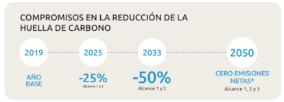 Otra prioridad es disminuir la huella de carbono asociada a la actividad en todos los eslabones del ciclo de elaboración de los productos. En 2024, Lactalis España dio un paso decisivo en la descarbonización de su actividad industrial: ha alcanzado una reducción del 69,3% de las emisiones de dióxido de carbono (CO₂) de alcance 1 y 2 respecto al año base, 2019.