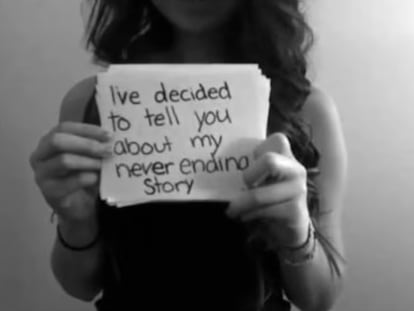 Sufrió acoso, burlas, violencia física, insultos, cambios de instituto, de ciudad, terapia, medicación, autolesiones, ataques de pánico, ingresos en el hospital. La primera cuartilla, con la que comenzaba el vídeo, era un “¡hola!”, con un corazón como punto de la exclamación. La segunda: “He decidido contaros mi historia, que no se acaba nunca”.