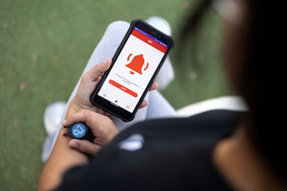 El juzgado impuso al hombre una medida cautelar de alejamiento, que al estar en prisión no hizo falta. Hasta que salió en agosto de 2024. Tardaron 24 horas en colocarle la pulsera y aquel día se le hizo eterno a su expareja. “No salí de casa, los niños no fueron al colegio, estaba muy asustada”, relata. Pero ahí comenzó el segundo martirio. El dispositivo le dio un nuevo poder al maltratador. Descubrió que con él podía alterar a la mujer de manera permanente.