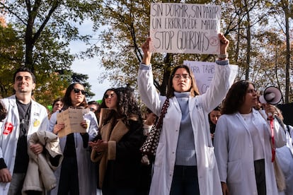 En Madrid, más de un millar de personas han salido a la calle. Critican que su carga de trabajo es inasumible y se sienten decepcionados con la ministra de Sanidad, Mónica García, que fue médica antes que política. “Mónica, escucha, también es tu lucha”, ha sido el cántico que, al ritmo de una batucada, se ha escuchado en la cabeza de la marcha. Esta ha partido desde el Congreso de los Diputados en dirección al Ministerio de Sanidad.
