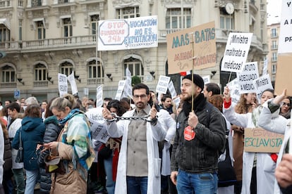 Los médicos van este miércoles a su tercera huelga en contra del borrador del Estatuto Marco para los profesionales sanitarios, el texto que aporta las líneas generales de casi un millón de empleados públicos y que cuenta con el apoyo de los sindicatos mayoritarios del sector. En contra del texto acordado con el Ministerio de Sanidad para reformar una ley que lleva más de 20 años vigente, están los sindicatos médicos, que protagonizaron numerosas movilizaciones el año pasado y que comienzan 2026 con un paro de dos días (miércoles y jueves), convocado por la Agrupación Profesional Por un Estatuto Médico y Facultativo (APEMYF), integrada por 16 organizaciones médicas de toda España. Piden un estatuto propio y diferenciado de los demás, algo que el ministerio rechaza de plano. Además de ese, son varios los puntos que separan a Sanidad y a los médicos, pero estos sintetizan los principales desacuerdos: horas y remuneración de las guardias, jornada laboral, jubilación anticipada y categoría profesional.