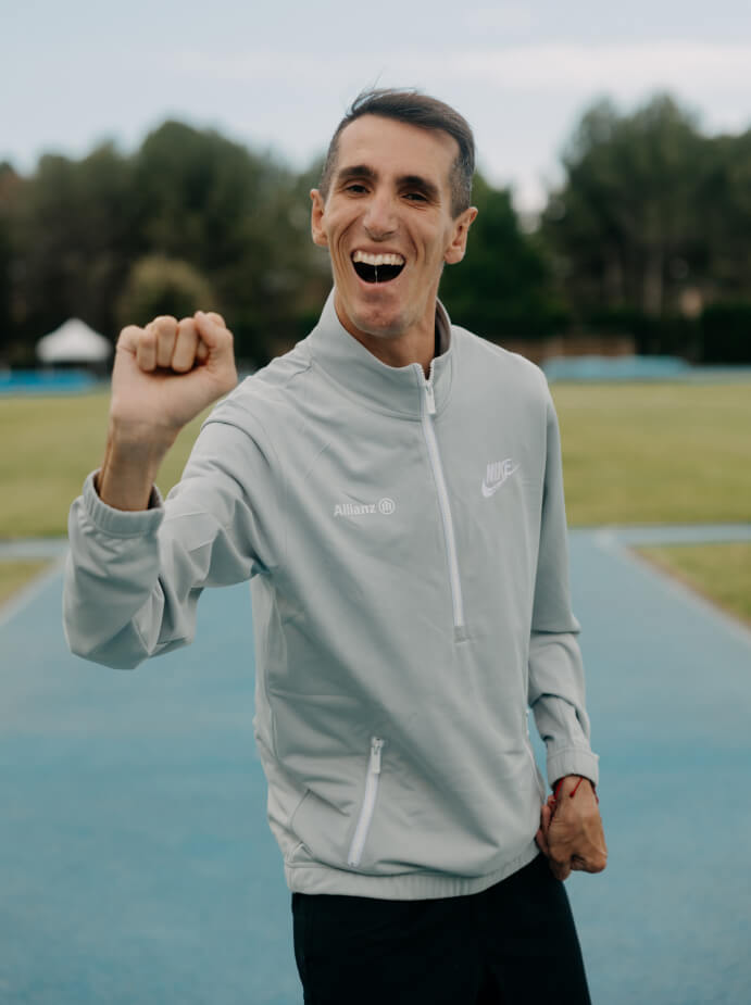 Con seis meses se le diagnosticó una encefalitis que le provocó una parálisis cerebral. La secuela: un 76% de discapacidad física. Creció sin conocer dónde estaban sus límites y se convirtió en atleta. Entre otros muchos logros, ha culminado cinco triatlones, un aquatlón, 11 medias maratones y dos maratones y, sobre la bici, la Madrid-Lisboa Non Stop o recorrido el Camino de Santiago.