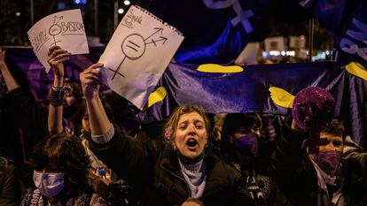 El miércoles 8 de marzo, Día internacional de la Mujer, las feministas están llamadas en cada esquina de España a salir a la calle a protestar. Lo harán en un contexto muy diferente al que había en 2018, cuando sumaron centenares de miles de manifestantes en 120 ciudades, una cifra sin precedentes y con un movimiento unido que tuvo alcance mundial. Las consecuencias de la ley del solo sí es sí, que ha causado rebajas de penas y excarcelaciones a reos de delitos sexuales, avivan el fuego de la separación en el feminismo, que ya se mostró dividido en 2022 por la llamada ley trans, por la que parte del movimiento decidió escindirse con el argumento de que la norma va a suponer un “borrado de las mujeres”. Este año, la mayoría de asociaciones feministas han hecho una convocatoria conjunta en las principales ciudades españolas, pero en ciudades como Madrid, Barcelona, Santiago de Compostela o Gijón el feminismo marchará dividido.