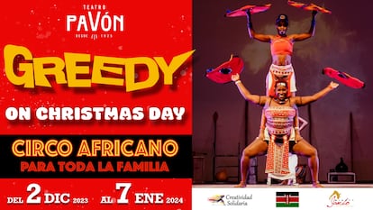 Por ser lector de EL PAÍS, consigue una entrada doble para Greedy on Christmas Day, un circo africano que llega a Madrid por Navidad, el próximo sábado 2 a las 17:00 o domingo 3 de diciembre a las 12:00 en el Teatro Pavón de Madrid.