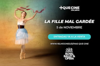 El próximo 5 de noviembre la temporada de ballet en Cine Yelmo arranca con la proyección de La fille mal gardée, un ballet de Frederick Ashton sobre una joven de naturaleza caprichosa que ansía casarse con su amado. Por ser lector de EL PAÍS, participa y consigue una entrada doble para disfrutar de esta proyección en la sala de Cine Yelmo de tu ciudad a través de +Que Cine, su ventana de contenidos alternativos.