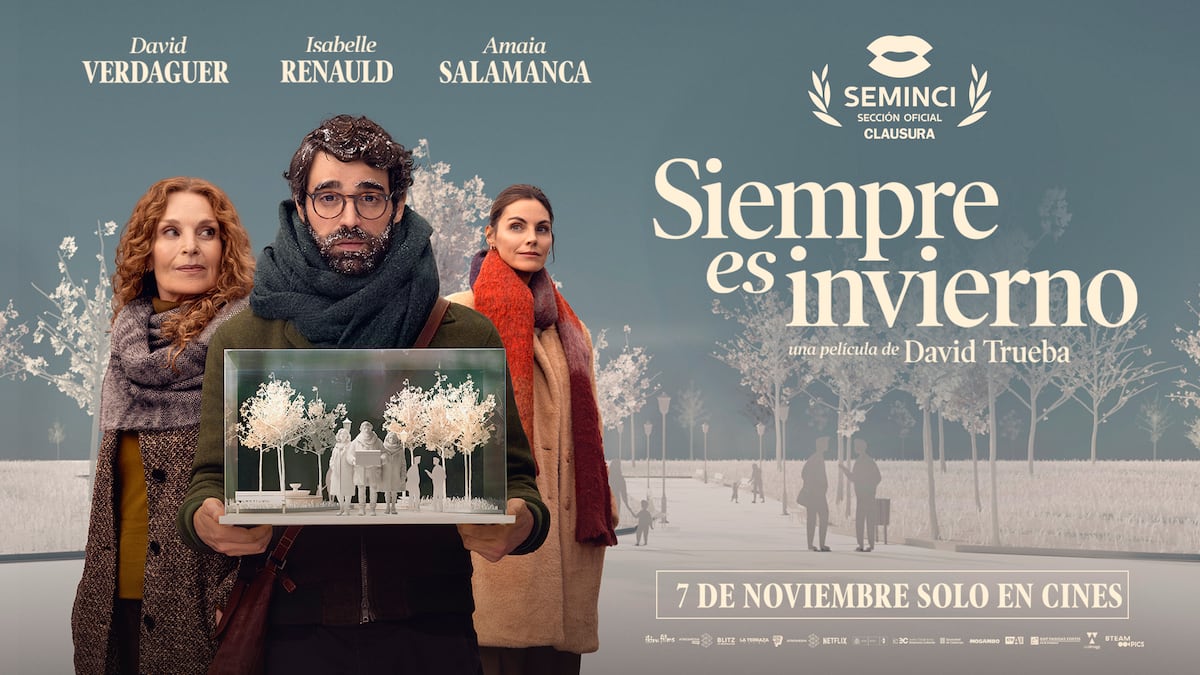 El próximo 7 de noviembre se estrena en cines Siempre es invierno, una película dirigida por David Trueba y protagonizada por David Verdaguer, Amaia Salamanca y la actriz francesa Isabelle Renauld. La cinta narra la historia de un arquitecto (David Verdaguer) cuya vida cambia completamente de un día para otro.