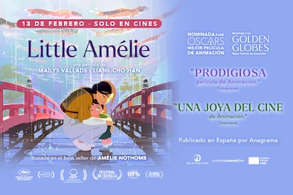 El próximo 13 de febrero se estrena en cines Little Amélie, un film nominado a Mejor Película de Animación en los premios BAFTA y los Óscar, dirigida por Maïlys Vallade y Liane-Cho Han, y basada en el best seller de Amélie Nothomb. Por ser lector de EL PÁIS, consigue una entrada cuádruple y asiste al preestreno el próximo 11 de febrero a las 20.15 en los Cines Verdi de Madrid. ¡Participa en el concurso!