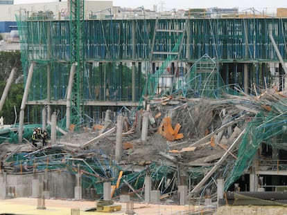 La caída del forjado de un complejo de edificios de oficinas en construcción en Alcobendas provocó la muerte de dos obreros y heridas a otro seis