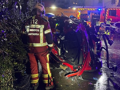 Por causas que se desconocen, el coche se ha salido de la carretera y ha volcado en Cabezón de la Sal