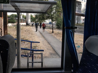 La línea solo tiene cuatro paradas, conecta Vallecas con Valdemingómez, lo más cercano al poblado chabolista de La Cañada. En su interior conviven trabajadores, estudiantes, familias con niños y sobre todo toxicómanos