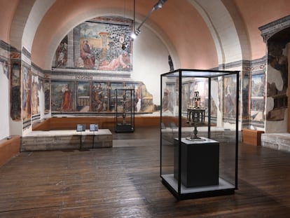 La sala capitular se ha reformado para acoger los frescos y evitar diferencias con las condiciones que tienen ahora en el MNAC