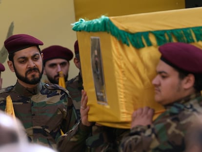 La milicia chií entierra a las afueras de Beirut a Haizam Ali Tabatabai, asesinado el domingo en el mayor ataque en un año de alto el fuego en Líbano