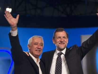 Mariano Rajoy y Javier Arenas cierran el cónclave de los populares El número tres del PP pinta un panorama desolador para Andalucía si gana el PSOE