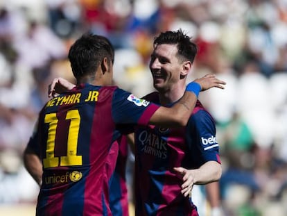 El delantero juega y hace jugar al Barcelona, espoleado también por el primer triplete de Luis Suárez, y descompone por completo a un Córdoba que desciende a Segunda