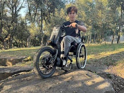 El piloto de motocross, de 16 años, sufrió una caída en mayo y ahora camina con un aparato robótico que le permite ponerse en pie