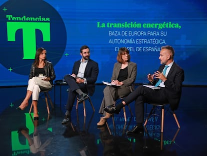 El quinto desayuno del Proyecto Tendencias reúne a los expertos Beatriz Corredor, presidenta de Redeia, Joan Groizard, secretario de Estado de Energía, Lara Lázaro, investigadora del Real Instituto Elcano, y Antonio López-Nicolás, economista jefe de la dirección general de energía de la Comisión Europea