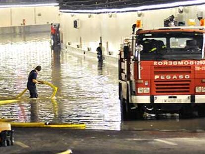 Los bomberos achican agua en la M-30