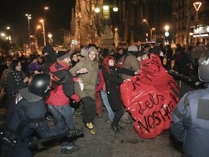 Los activistas han lanzado huevos y objetos contra un centenar de católicos frente a la Sagrada Familia
