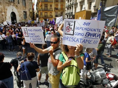 Miles de discapacitados recorren Valencia en protesta por el retraso de las ayudas del Consell La deuda de Bienestar Social entre 2011 y 2012 asciende a 45,6 millones hasta julio