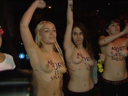 Lara Alcázar, fundadora de Femen en España, explica su acción de hoy en el Congreso "El aborto es sagrado y él quiere arrebatarnos ese derecho", dice sobre el ministro Femen planea crear "un centro de adiestramiento de activistas" en Madrid