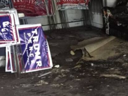 Junto al edificio atacado ha sido hallada esta pintada: "Republicanos nazis, fuera de la ciudad o si no..."