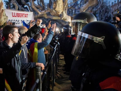 Un petit grup de membres dels CDR decideixen passar la nit davant de la Cambra. Els Mossos han detingut dues persones per enfrontaments amb els agents
