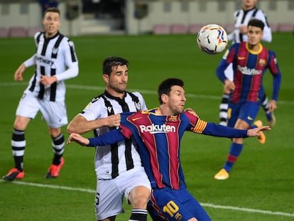 El argentino resuelve un partido espantoso de los azulgrana ante el Levante