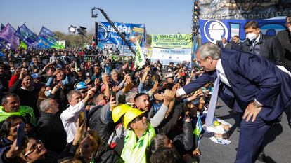 El presidente de Argentina participa como principal orador en un mitin organizado por el gremio de los obreros de la construcción