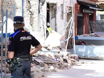 El edificio afectado, atravesado por una enorme grieta lateral, ha sido apuntalado y acordonado mientras los técnicos valoran su estabilidad