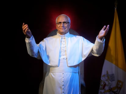 La escultura del pontífice se exhibe en la misma sala en la que se encuentran las recreaciones de Juan XXIII, Juan Pablo II, Benedicto XVI y Francisco I