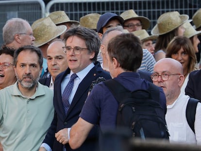 El ‘expresident’ se tuvo que conformar con sacar un papel doblado del bolsillo mientras miraba alrededor, nervioso. Parecía un belga despistado en la Barcelona calurosa