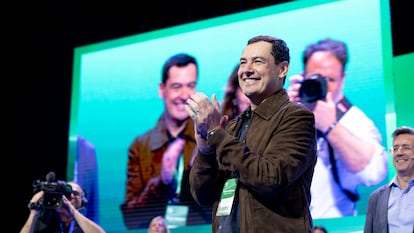 El presidente andaluz encapsula el cónclave del PP en la comunidad de la sucesión de Mazón, la pareja de Ayuso y la crisis de los cribados