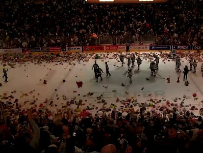Más de 100.000 osos de peluche caen al campo durante un partido de hockey en Estados Unidos
