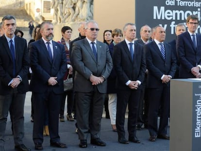 Una concentración durante toda la mañana en Vitoria homenajea a los damnificados por la violencia. "Debimos reaccionar antes y hacerlo mejor y más unidos", dice la declaración